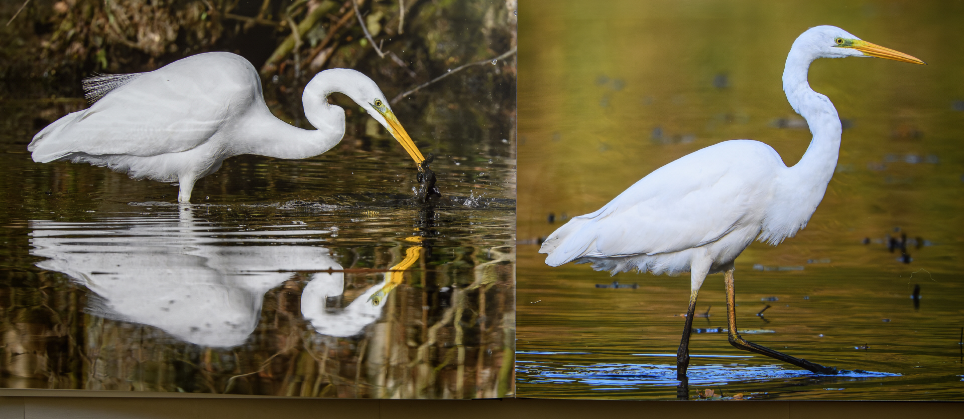 An einem kleinen Teich im Bochumer Süden hatte sich ein Silberreiher zur Jagd eingefunden. Bevor er von dem ansässigen Graureiher später verjagt wurde, konnte ich noch einige Aufnahmen von dem schönen Vogel machen.