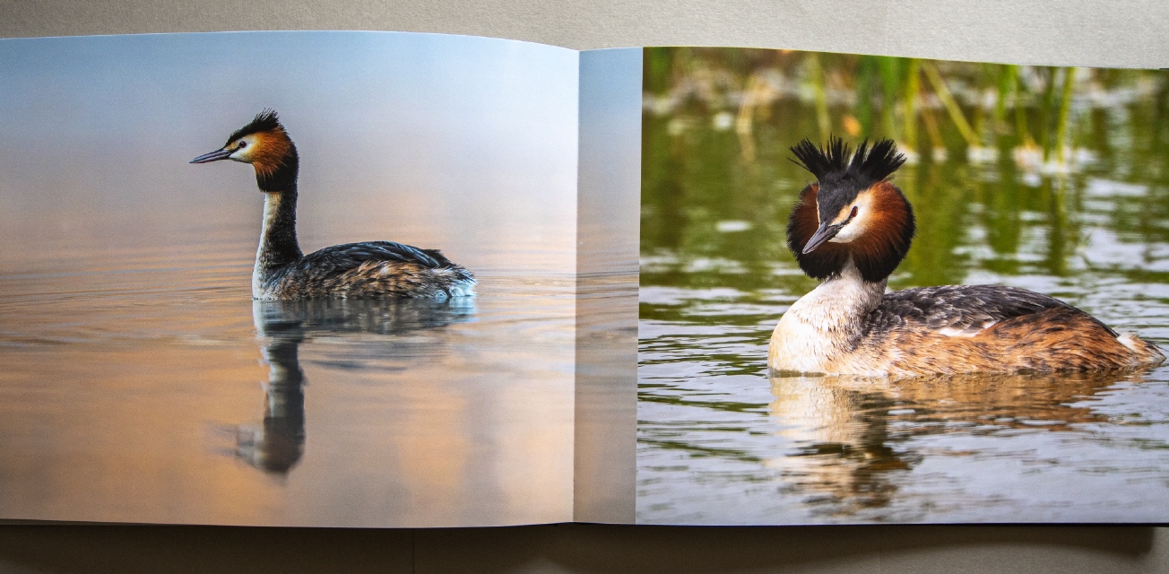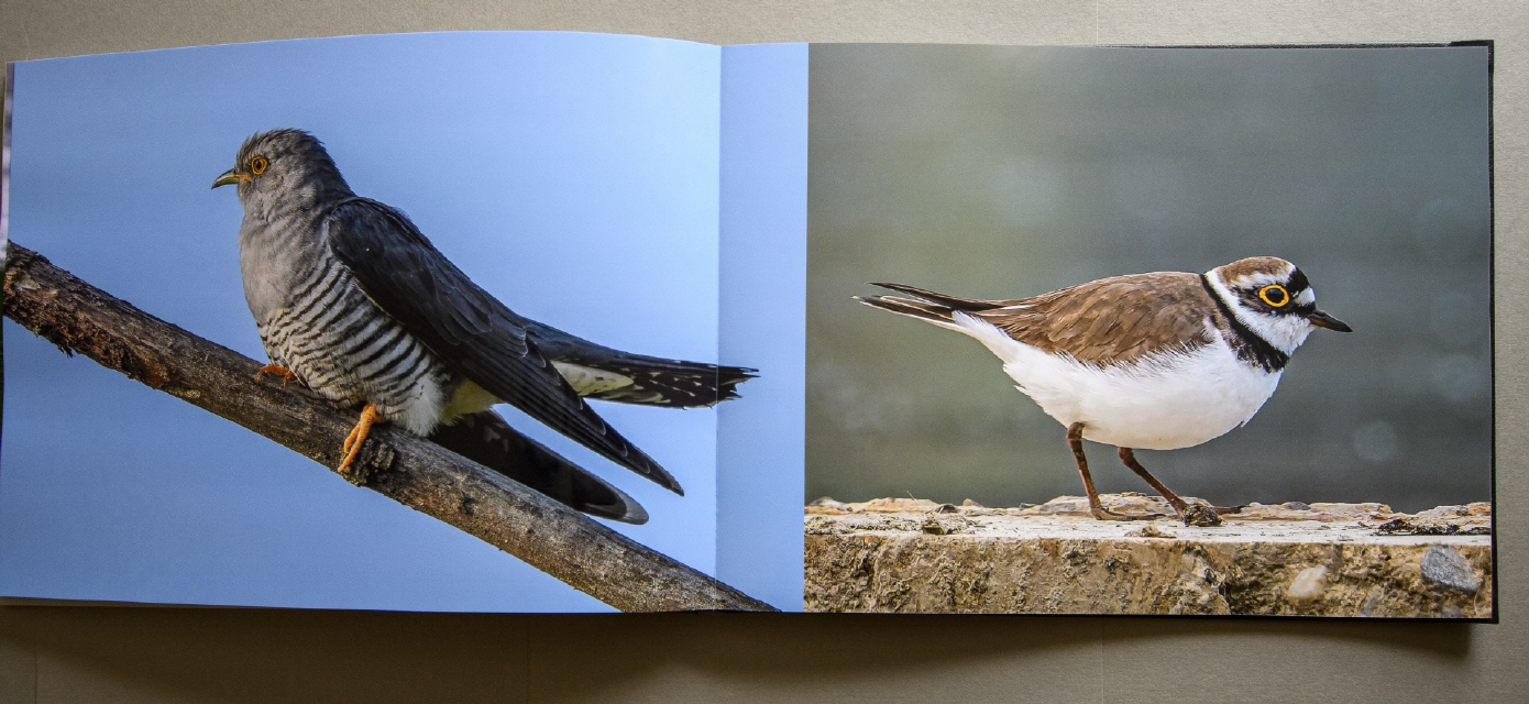 Für die Gestaltung der Innenseiten des Buches habe ich glänzendes Fotopapier gewählt. Hierdurch kommen die fotografierten Vögel sehr gut im Bild zur Geltung und der Schärfeeindruck ist hervorragend. Auch die Farben, der Kontrast und die Lichter und Tiefen wurden von Saal Digital so wiedergegeben, wie ich sie auch auf meinem kalibrierten PC-Monitor sehen konnte.